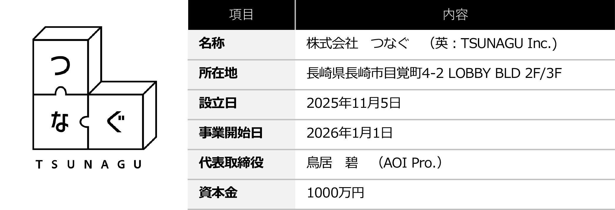 新会社「株式会社つなぐ」概要